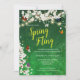 Bem-vindo à primavera com este convite com flores brancas desabrochando em galhos com borboletas, joaninhas e abelhas voando. O fundo é um degradê verde em aquarela. Perfeito para um chá de noiva ao ar livre ou com tema de jardim, festa de noivado, aniversário ou almoço especial. Disponível com produtos correspondentes.