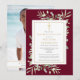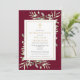 Um convite de lembrança de celebração de vida personalizado botânico elegante com folhas de verde àquarela em um fundo burgundy. Projetado por Thisisnotme©
