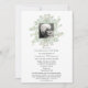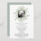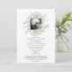 Adicione sua própria foto. Celebração Elegante da Vida Funeral Memorial Watercolor Eucalyptus design. Os modelos foram configurados prontos para editar e personalizar. Se você quiser alterar a cor ou a fonte, clique na guia personalizar mais no final do modelo. Os artigos de papelaria e de acordar são guardados.