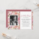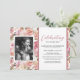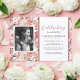 Convite à lembrança funerária com um pano de fundo floral de cor-de-água rosa rústico, uma foto da pessoa que faleceu e uma celebração do modelo de vida que é fácil de personalizar.