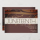 Um convite para uma comemoração de 12 de junho. O convite tem um esquema de cores castanho e creme. Personalize o texto, adicione este convite ao seu carrinho e comemore a liberdade, os ancestrais e o progresso a seguir.