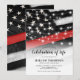 Honre os bravos com um convite extraordinário para o Serviço Memorial de Funeral de Bombeiros. Essa lembrança única apresenta a majestosa bandeira dos EUA, a fina linha vermelha emblemática e luzes de corda quentes para simbolizar a luz eterna de seu serviço heróico. Com um modelo de celebração da vida fácil de personalizar, suas palavras de amor e respeito serão perfeitamente capturadas em uma homenagem digna ao espírito indomável de um bombeiro falecido.