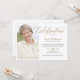 Honre uma vida bonita com a nossa celebração do convite para fotos memoriais. O projeto apresenta "Celebração" em uma elegante tipografia de ouro falso com espaço reservado para fotos de cheio para exibir a foto de seu ente querido. Projetado em layout simples para exibir seus detalhes de serviço memorial.