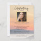 Honre seu ente querido com este lindo convite de celebração de vida. A frente apresenta uma cena aquática ao pôr do sol, sua foto emoldurada por uma borda dourada falsa e detalhes da sua celebração. (Altere facilmente a foto de fundo para uma de sua escolha.) O verso oferece espaço para outra foto e poema ou escritura (ou exclua). O modelo é muito fácil de usar e alterar - crie um convite que seja único, clássico e será guardado para sempre.