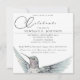 Um beija-flor pintado à mão com detalhes impressionantes e sutis tons de aqua e rosa decora esta celebração única, delicada e amorosa do convite à vida em preto clássico e branco