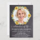 Funeral Moderno Do Memorial De Girassol/Celebração Do Convite À Vida. Estes convites para funeral de simpatia apresentam uma foto em um design de girassol e coroa floral na ardósia do quadro de chalkboard. Personalize esta celebração do convite para o funeral de vida com as fotos, nomes e datas de seus entes queridos, detalhes do evento. COPYRIGHT © 2021 Judy Burrows, Black Dog Art - Todos Os Direitos Reservados. Celebração Do Convite Fotográfico De Chapa Floral De Girassol