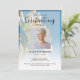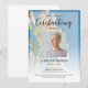 Um convite de celebração da vida lindo - especialmente para alguém que ama flores e talvez jardinagem - o design apresenta uma foto pessoal quadrada, 6 linhas de texto personalizado e uma foto de fundo de lindos lírios brancos. Você pode facilmente trocá-la por sua própria foto de fundo. Clássico, mas único - este modelo é muito fácil de personalizar e também será uma lembrança memorial maravilhosa.