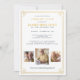 Um elegante e clássico ouro e Celebração Branca de Convite ao Vivo. Três das suas fotografias favoritas podem ser colocadas no fundo. Um quadro de Deco de Arte eterno dourado rodeia seu texto e fotografias. Todo o texto pode ser facilmente editado para criar uma lembrança pessoal. Precisa de ajuda para encontrar itens correspondentes? Me mande mensagem. Eu sou Nelda e adoraria ajudar!