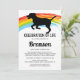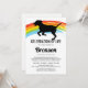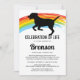 Convite de serviço memorial de funeral de animal de estimação com um fundo branco simples, uma ponte do arco-íris colorida, uma silhueta de um cão e um modelo de celebração da vida que é fácil de personalizar.