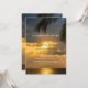 Convite à lembrança funerária, com uma natureza, palma e pôr do sol na celebração da praia do modelo de vida que é fácil de personalizar.