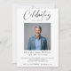 Celebre a vida de seu amado com nossa Celebração de Foto do Memorial Funeral do Convite à Vida. Personalize-o com uma fotografia especial para criar um tributo pessoal. É uma maneira séria de anunciar o serviço memorial, convidando amigos e família a se unirem em homenagens e lembranças. A design é elegante e moderna, mantendo o foco na querida foto e na celebração da vida. Personalize-o com detalhes importantes, como a data, hora e local do serviço, e adicione uma mensagem ou citação sincera. Lembre-se do seu amado e convide outros a compartilhar a celebração com nossa Memória Funeral Mínima do Memorial Foto do Convite à Vida.