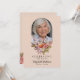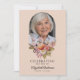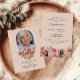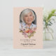 Este belo cartão de convite para celebração floral de vida ou serviço funerário ou memorial (disponível como um evite para download instantâneo ou cartões impressos) homenageia lindamente a memória de um ente querido, misturando elegância com um toque de calor e personalização. A frente apresenta um fundo rosa suave, com uma foto do seu ente querido emoldurada dentro de um arco delicado no topo. Abaixo da foto, um arranjo deslumbrante de flores e folhagens em tons pastéis de rosa, laranja e branco, incluindo rosas e peônias, adiciona um toque suave e reconfortante, complementando perfeitamente o tema sereno. As palavras "Celebrando a vida de" são elegantemente escritas, seguidas pelo nome do seu ente querido e datas de nascimento e morte, criando uma homenagem sincera que é ao mesmo tempo atemporal e graciosa. O verso do cartão convida amigos e familiares a se reunirem em memória, com detalhes do serviço organizados de forma organizada em fontes clássicas. O fundo rosa suave continua com mais elementos florais lindos na parte inferior, mantendo a estética coesa e serena do cartão. Esta seção também inclui espaço para quaisquer pedidos ou informações especiais, adicionando um toque personalizado ao convite. Este cartão serve como uma maneira adorável de comemorar uma vida querida, oferecendo conforto e graça durante um momento de reflexão.