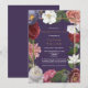 Um elegante convite de funeral personalizado de celebração da vida com belas flores florais e uma moldura dourada em um fundo roxo. Criado por Thisisnotme©