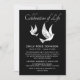 Convite memorial funerário, simplesmente desenhado com duas pombas brancas, e uma celebração do modelo de vida que pode ser personalizado.