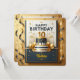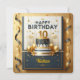 Celebre um marco especial com este design de aniversário elegante e sofisticado. Com uma linda torta de vários andares encimada pelo número "10", este cartão combina azul marinho luxuoso e detalhes dourados. Balões dourados, uma coroa real e fitas delicadas completam o visual formal, tornando-o perfeito para uma festa ou celebração de 10º aniversário memorável. Este design pode ser facilmente personalizado com o nome do aniversariante.