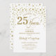 Convite de Celebração de 25º Aniversário Surpresa em Branco e Dourado.