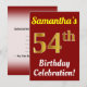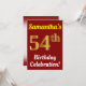 Este convite de festa de aniversário apresenta uma mensagem como "Celebração de 54 Anos de Idade de Samantha!", onde o nome pode ser personalizado e onde o número "54º" tem uma aparência de dourado falso. Ele também apresenta um fundo de cor vermelha. Os detalhes do evento no verso podem ser personalizados. Pode ser usado para convidar pessoas para a celebração ou festa de aniversário de cinquenta e quatro anos de alguém. [~Z0000120]