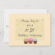 Um fundo de cor suave e divertido, com bolinhas de ouro pálidas e três cupcakes brilhantes, sotaque este convite de festas de excelente. Personalize com todas as suas informações. Mude a idade para outra, se quiser! Muito fácil de personalizar como quiser!