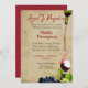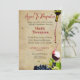60ª Idade para Perfeição do Vinho Convite à Celebração de Aniversário com Vidro e Vinho a Vir de uma garrafa. A design apresenta um fundo texturizado castanho com uvas e folhas. Perfeito para um homem ou mulher, mude a idade conforme necessário. Personalize com suas informações pessoais.