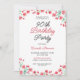 Um vibrante design floral com flores vermelhas de aquarela enfeitando os cantos, aliado a um roteiro elegante e texto sem serifa — uma bela maneira de honrar um aniversário de 90 marco.