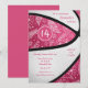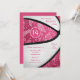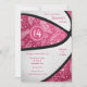 Este convite de festa de aniversário de basquete fofo apresenta a imagem realista de uma bola de basquete estilizada e superdimensionada de forma abstrata, que tem painéis alternados rosa e branco recoloridos - um padrão doodle de paisleys, flores e penas em branco cobre os painéis rosa da bola de basquete - personalize com os detalhes da festa dela - por katz_d_zynes