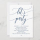 Linda Caligrafia Moderna em Azul Marinho, Anúncio de Casamento Intimo, cartão de convite (Vamos festejar). Isto é perfeito para a recepção do seu casamento e festa de celebração pós-casamento. Adicione seus detalhes em fonte / letra correspondente.