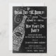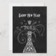 Quebre o Convite de festas da véspera de Ano Novo em Preto e Branco. Garrafa de champanhe bonito, de estilo lacy, decorada com pássaros apaixonados, uvas e vinhas. Excelente para Noivado, Anos novos ou qualquer celebração. Personalize este convite com o seu próprio texto. Ilustração original por pj_design.