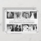 Mostre o casal comemorativo com oito fotos neste convite de colagem de fotos elegante para uma festa de aniversário de casamento de 25 ou 50 anos. Preencha com fotos antigas em preto e branco do casamento, como mostrado aqui, ou crie uma história de fotos "através dos anos" com imagens de todo o casamento. Isso certamente será um convite que seus convidados lembrarão e carregarão no coração. Os detalhes da festa são facilmente personalizados no verso.