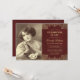 Um convite de funeral vintage burgundy ("Celebração da vida") recomendado para uma mulher. Na metade esquerda, há um espaço reservado para uma foto sepia vintage que você deve substituir. Na metade direita, o texto é escrito entre bordas douradas barrocas luxuosamente decoradas (para cima e para baixo), em um fundo vermelho burgundy. O nome é escrito em uma fonte caligráfica, o restante em letras maiúsculas. A mensagem "Join us for the" é arqueada acima do restante do texto.