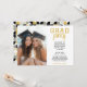 Se você estiver tendo uma festa de formatura de grupo este ano — ou graduação em conjunto, este anúncio e convite tem uma foto e uma sala para pelo menos 4 nomes. A parte de trás do convite tem um padrão moderno de meia lua. Adicione qualquer ano para mostrar este design elegante e moderno. Isto pode ser utilizado para qualquer formando - segundo grau, universidade, escola de formando, escola de medicina ou mesmo escola de comércio.