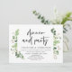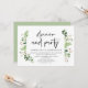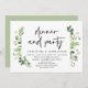 Cartão de convite de casamento em elopamento com tema de folhas verdes de jardim de verão, com escrita preta moderna (Celebração de Jantar e Festa de Casamento em Elopamento). É perfeito para o seu jantar de recepção de casamento em elopamento / festa de celebração pós-casamento. Adicione seus detalhes em fonte / letra preta correspondente.