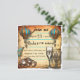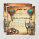 Balões de ar quente de aqua e cobre, óculos e esguicho inspiraram escombros, e uma borboleta steampunk aparece na frente e no verso deste convite de festas personalizável. Um fundo de papel rasgado adiciona mais talento a este convite para todas as suas festas de galhardetes, vitorianas ou industriais. Há espaço no reverso deste convite para deixar informações adicionais para seus convidados ou adicionar informações sobre seu convidado de honra. Aproveite a sua festa!