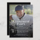 Este convite de festas de aposentadoria único tem um modelo de foto para incluir uma foto favorita do convidado de honra. Para obter melhores resultados, use uma foto de orientação vertical. O texto modelo tem uma combinação de serif moderna e serif tipo face. Uma camada sombria sombria adiciona uma sombra sobre sua foto para que o texto em branco seja claro e legível. Personalize com sua foto e detalhes para uma celebração memorável de aposentadoria!