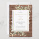 Um convite de celebração de vida personalizado rústico com foto e lembrança, apresentando vegetação sobre um fundo de painéis de madeira. Criado por Thisisnotme©
