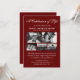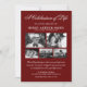 Celebre a vida significativa de seus entes queridos com nossos elegantes convites de funeral personalizados. Com um fundo vermelho elegante e um modelo de celebração da vida moderno, dá um toque caloroso ao compartilhar a memória deles. O design integra graciosamente cinco fotos selecionadas do seu ente querido, criando uma homenagem delicada, porém poderosa, à sua jornada notável. Comemore os momentos inesquecíveis da vida conosco.