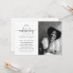 Convide amigos e familiares para homenagear e lembrar a vida de seu ente querido com nosso elegante convite de funeral memorial de celebração de vida com foto. Este design personalizado apresenta uma foto de sua escolha, capturando memórias queridas e refletindo a essência de seu ente querido. O design é moderno, elegante e minimalista, criando um visual sofisticado e atemporal. Com detalhes personalizados, esses convites servem como uma homenagem sincera e uma forma significativa de convidar os outros a se juntarem à lembrança e ao apoio. O design moderno e a colagem de fotos personalizada tornam este convite um souvenir especial para todos os destinatários. Compartilhe os detalhes do serviço memorial e expresse seu desejo por sua presença enquanto você celebra e lembra a vida de seu ente querido. Esses convites são uma forma atenciosa e tocante de convidar os outros a fazerem parte deste evento importante.