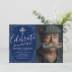 Descubra a dignidade elegante dos nossos convites de funeral e memorial personalizáveis. O fundo azul-marinho profundo estabelece um tom contemplativo, delicadamente realçado pelos acentos prateados cintilantes. Uma foto pessoal do seu ente querido, combinada com o nosso modelo de texto personalizável, irá sublinhar cuidadosamente a celebração da sua vida. A cruz religiosa simboliza fé e esperança, apresentando uma homenagem radiante ao falecido. Personalize a cor se desejar - este convite é tão único quanto o indivíduo que você está lembrando.