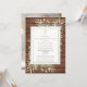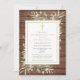 Um convite personalizado de celebração de vida e lembrança com vegetação em um fundo de painéis de madeira rústica. Criado por Thisisnotme©