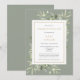 Um convite de lembrança de celebração de vida personalizado e elegante com folhagem botânica em aquarela em um fundo verde sage. Criado por Thisisnotme©