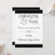 Inicie sua festa de aniversário com o nosso convite de celebração de aniversário de casamento de 25 anos dourado, com um convite deslumbrante em fundo branco e preto com corações duplos prateados.