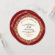 NOTA: ESTE É UM DESIGN IMPRESSO PLANO, não há elementos em relevo, joias ou tintas metálicas douradas utilizadas. PALETA DE CORES: Vermelho rubi, branco e aparência metálica dourada COLEÇÃO DE DESIGN: Em um design circular, este convite tem uma bela borda de grinalda de filigrana dourada com uma aparência e sensação tridimensional que destaca a frente do convite que contém o texto "Feliz 40º Aniversário". O design é complementado com joias semelhantes a diamantes e trabalho de enrolado e é personalizado com os nomes do casal feliz e a data do casamento. No verso está a informação da sua celebração, que é facilmente personalizada usando os campos de modelo fornecidos. Há itens coordenados disponíveis para combinar com este convite para tornar a decoração da sua festa fácil de criar!