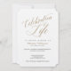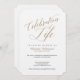 Celebrar uma bela vida com a nossa celebração do convite à vida. O projeto apresenta "Celebração da Vida" em uma elegante tipografia de ouro falso projetada em um layout simples para exibir os detalhes do evento.