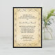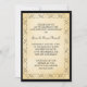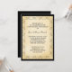 Este é um convite simples, mas lindo, para uma celebração de 50 anos de casamento. Seu texto em preto é colocado sobre um fundo dourado claro brunido, que é emoldurado com um desenho decorativo vintage em espiral. A imagem inteira é bordeada com preto dramático, e a parte de trás do convite também é preta. Muito formal e muito elegante! Este convite é versátil o suficiente para ser usado em qualquer ocasião formal.