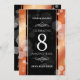 Faça do 8º aniversário do casamento de bronze uma celebração inesquecível com estes, exceto os anúncios de data! As letras esbeltas, pretas e brancas, com confete hexagonal em folha de bronze na moda e fundo preto, acrescentam um toque memorável para esta ocasião especial e marco. Personalize com nomes, local, endereço, data e hora do casal. Design © W.H. Sim. Mais informações em zazzle.com/expressionsoccasions
