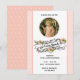 Convites de Brunch ou Celebração de Páscoa de primavera religiosa com imagem vintage do Menino Cristo segurando uma cruz dourada com fundo de pêssego, flor e bolinhas. Todo o texto e fontes podem ser modificados.