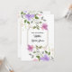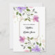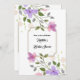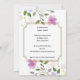 Um belo design de flores florais, cor-de-rosa e púrpura, desenhadas à mão, ao redor de uma elegante estrutura de borda de couro cabeludo dourado em um fundo branco que tem modelos para o anúncio de sua festa especial.