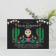Convite do Dia dos Mortos para a sua celebração do Día de los Muertos. O design apresenta caveira de açúcar floral, flores de festa mexicana, cacto e bandeirolas de caveira. Día de los Muertos está escrito em ossos e o modelo está pronto para você personalizar com seus detalhes. Por favor, navegue pela minha coleção de Dia de los Muertos para estilos alternativos e itens correspondentes.