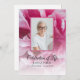 Convide os convidados a lembrarem o seu amado, depois de terem falecido com a elegante Celebração da Flor de Pequim Rosa do Life Funeral Invitation. Este bonito tributo personalizado à morte floral apresenta uma fotografia floral pintada digitalmente de pétalas cor-de-rosa magenta de flor florada. Personalize-o com o nome, as datas de nascimento e morte e a fotografia do falecido. Disponível como convite impresso para envio e/ou como download digital para fácil compartilhamento digital online.