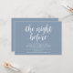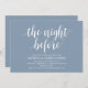 Planejar uma comemoração de janto de ensaio com o para ser noiva e noiva na noite anterior ao casamento? Convidar convidados com este cartão de convite para janto de Casamento de design de caligrafia azul, rústico e empoeirado.