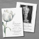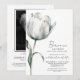 Celebre a vida de seu ente querido com este convite de serviço memorial floral elegante e moderno. Este design apresenta um fundo branco limpo na frente e no verso, adornado com um simples caule de flor de tulipa branca, adicionando um toque de graça e sofisticação. As fontes pretas combinam tipografia cursiva e serifa, proporcionando uma aparência refinada e de bom gosto. Perfeito para um serviço memorial, funeral ou reunião de lembrança, este convite inclui espaço para o nome do seu ente querido, datas e uma seção para compartilhar memórias ou um obituário no verso. Você pode personalizar todo o texto com suas informações e até ajustar a cor do fundo, se desejar. Além disso, o design permite uma foto no verso, que pode ser definida com um filtro preto e branco para um toque extra especial, embora isso possa ser modificado nas configurações do editor completo. Convite de Funeral Celebração da Vida com Roteiro Memorial. Disponível como convite impresso ou como convite digital para download que você pode enviar por e-mail ou mandar imprimir localmente!